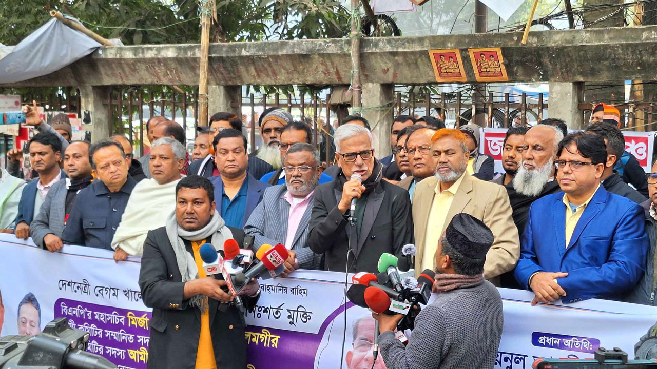 বুধবার (১৭ জানুয়ারি) প্রেস ক্লাবের সামনে গণতন্ত্র ফোরামের উদ্যোগে খালেদা জিয়ার নিঃশর্ত মুক্তি, বিএনপির মহাসচিব মির্জা ফখরুল ইসলাম আলমগীর, স্থায়ী কমিটির সদস্য মির্জা আব্বাস, আমীর খসরু মাহমুদ চৌধুরীসহ কারাবন্দি সব নেতাদের মুক্তির দাবিতে এক মানববন্ধনে তিনি এসব কথা বলেন।